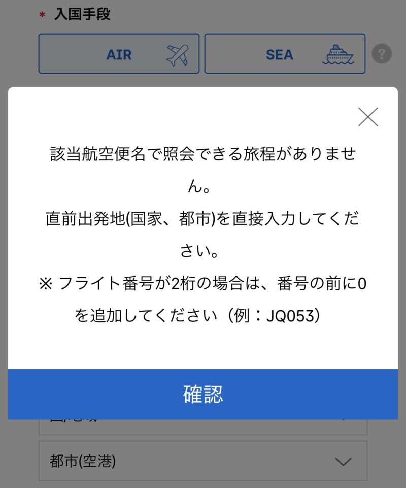 私の場合、入力していたにも関わらず、入国情報の都市(空港)が入っていませんでした・・・