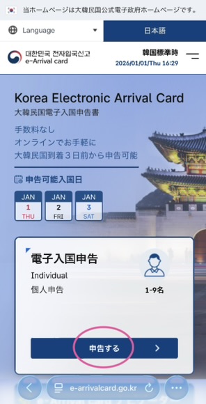 韓国に入国する日の3日前からできるから、落ち着いて家でやるのがオススメ!