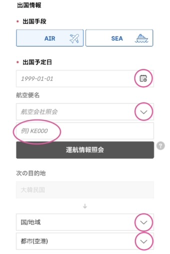 • 滞在先情報(滞在先名、住所、電話番号を入れる場面がありますので、韓国語か英語でメモしておきましょう)