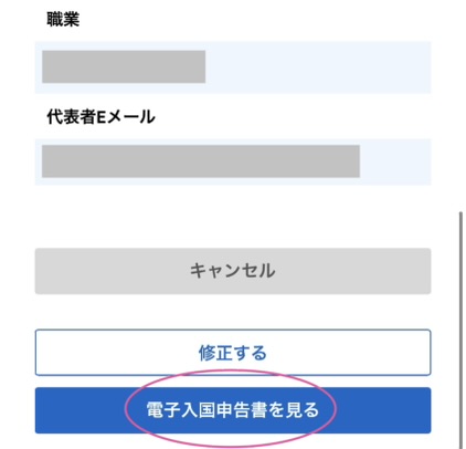「電子入国申告書を見る」をタップすると、正式な書面が出てきます。