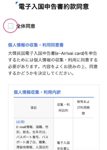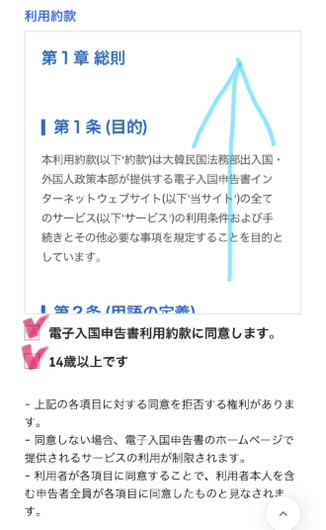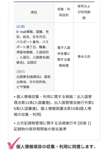 電子入国申告に関わる規約が書かれていますので、一読します。