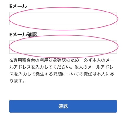 e-mailアドレスを入れます。確認にも同じものを。
