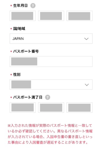しっかりとパスポート情報が読み取れると、以下の情報が自動的に入ります。