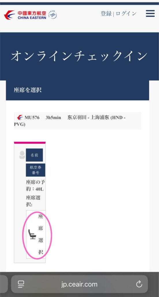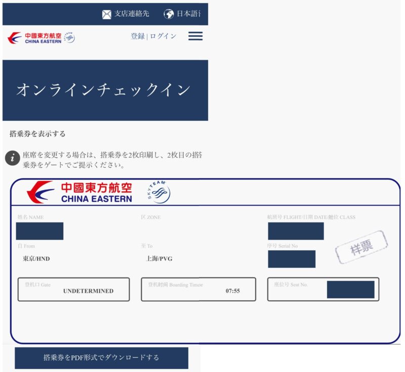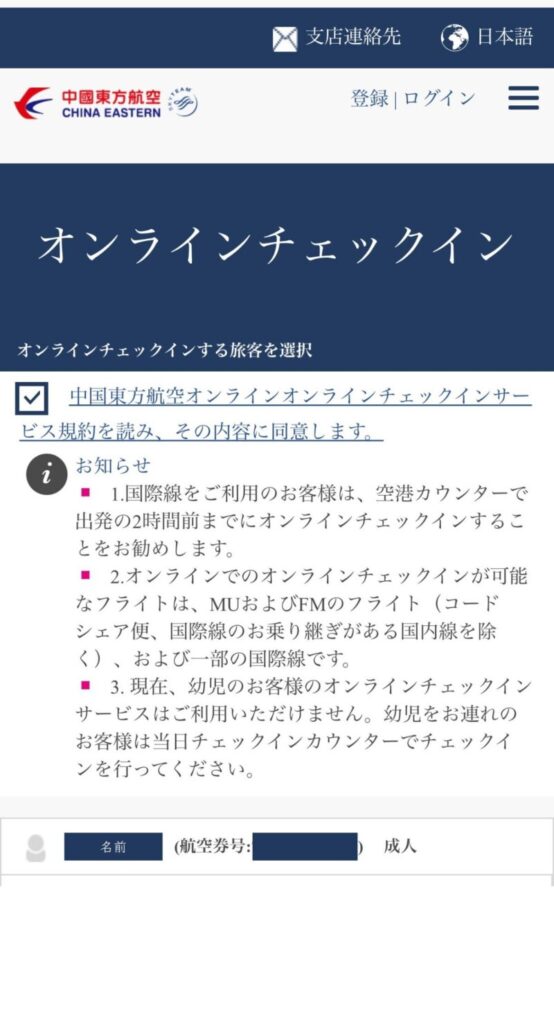 中国東方航空のオンラインチェックインは日本語でできて簡単!