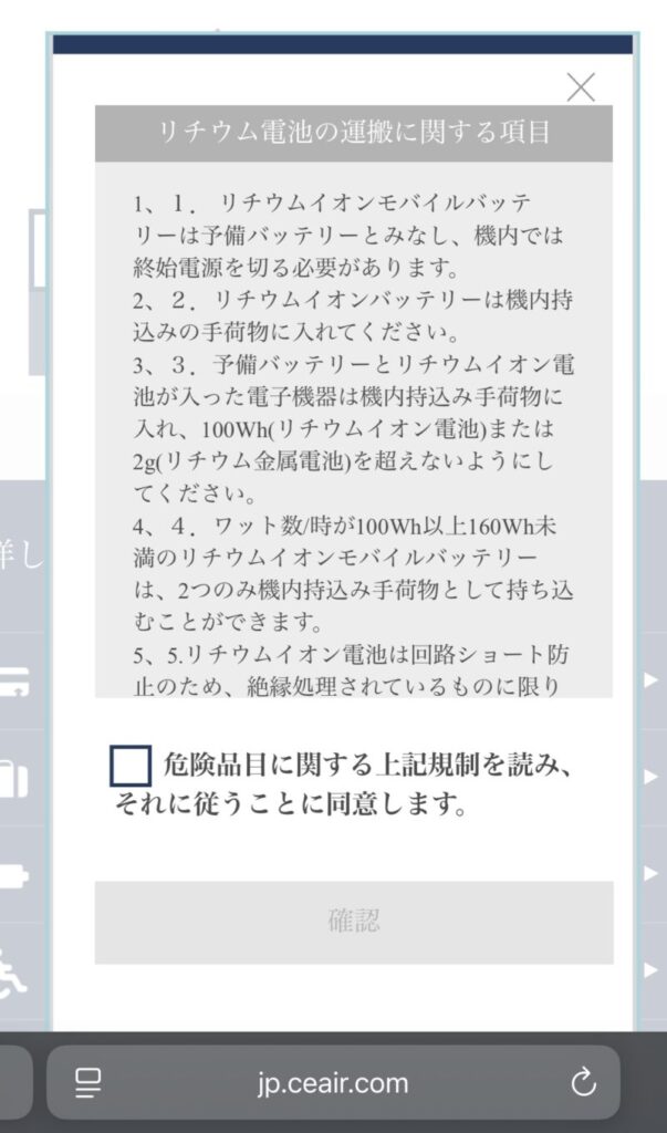 チェックボックスにチェックを入れて、「確認」をタップします。